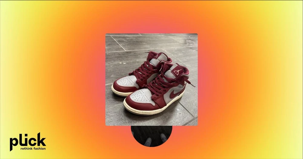 Nike Air Jordans i vinrött och grått - Snygga Nike Air Jordans i en cool kombination av vinrött och grått. Skorna har klassisk snörning och en hög design som ger extra stöd. Perfekta för dig som vill ha en stilren look med en sportig touch. Men tyvärr hittar jag inte lådan!