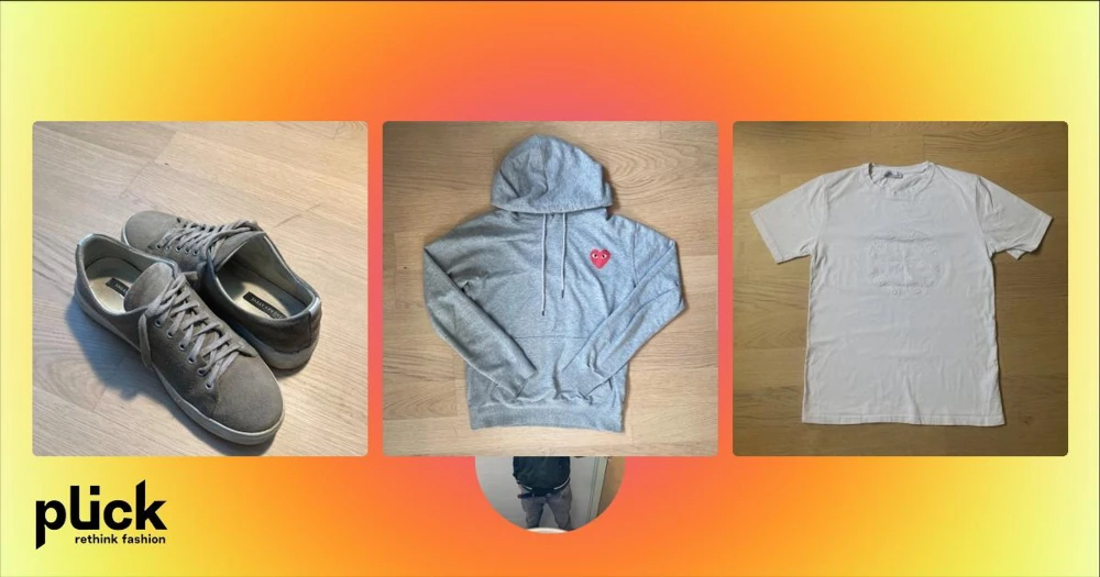 Grå hoodie Comme des Garçons Play - Grå hoodie från Comme des Garçons Play med ikoniskt rött hjärta med ögon på bröstet och stort hjärta på ryggen. Tröjan har huva med snörning, ribbade muddar och är tillverkad i mjuk bomull. Perfekt för dig som gillar streetwear med unik design.