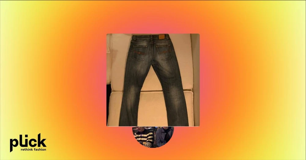 Nudie jeans  - Säljer ett par klassiska blå jeans med raka ben och snygga kontrastsömmar på bakfickorna. Jeansen har normal midja, fem fickor och bälteshällor. Perfekta för en avslappnad och stilren look.