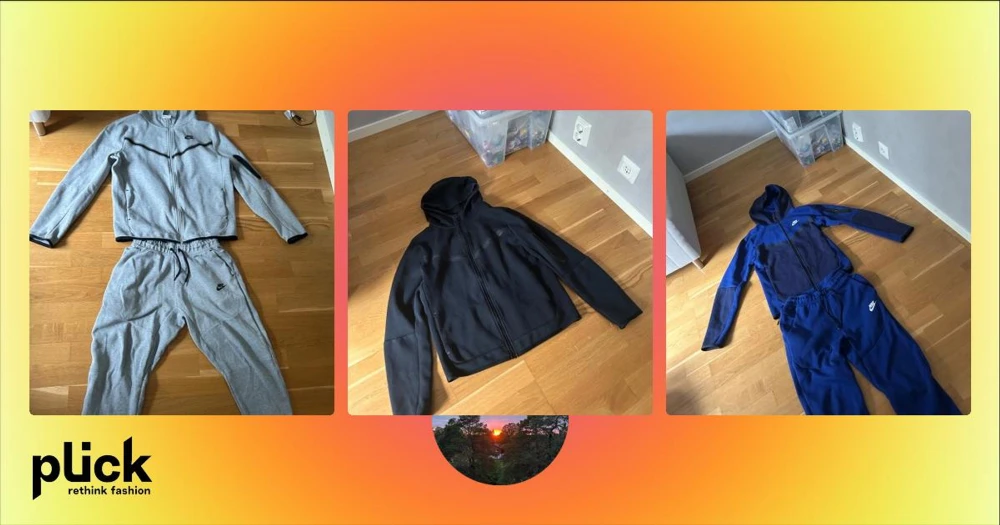 En blå nike tech skit snygg storlek S-M vuxen är inte helt säker på storlek  - Nike tech i två nyanser av blått med hel dragkedja och huva. Jackan har en vit Nike-logga på bröstet, svarta detaljer och en praktisk ficka med dragkedja på ärmen. Perfekt för dig som gillar sportig och avslappnad stil.