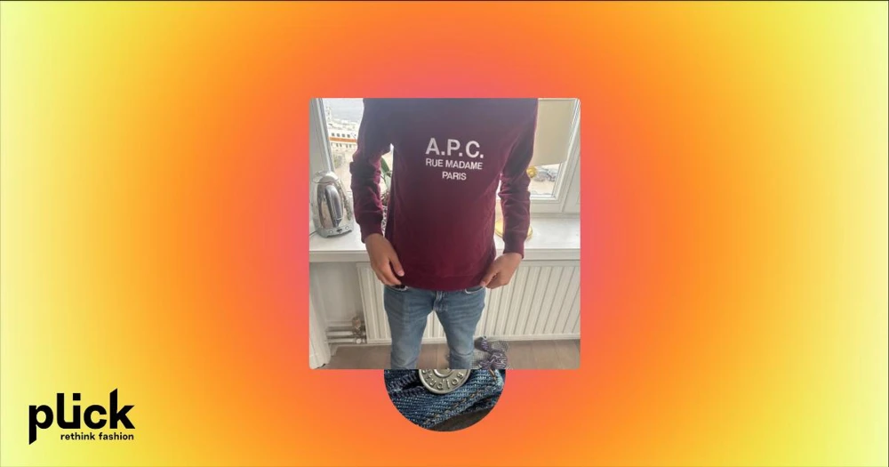 Vinröd sweatshirt från A.P.C. - Vinröd sweatshirt från A.P.C. med vit broderad text 'A.P.C. RUE MADAME PARIS' på bröstet. Klassisk rund hals, långa ärmar och ribbade muddar. Skön passform och tillverkad i mjuk bomull, perfekt för en clean och stilren look.