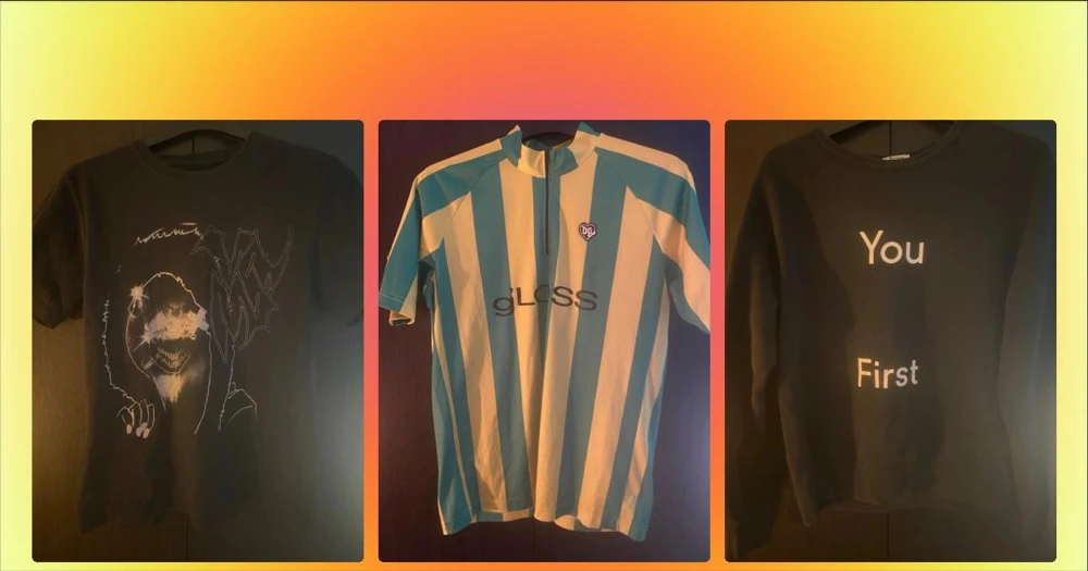 Ecco2k g’LOSS Jersey Brazil - Unik t-shirt från gLOSS x DGCO med breda turkosa och gula ränder, half zip framtill och tryck med dödskalle och D-9 på ryggen. Tillverkad i microfiberblandning med polyester och polyamid. Cool detalj med hjärtemblem på bröstet. Använd 1 gång bra skick