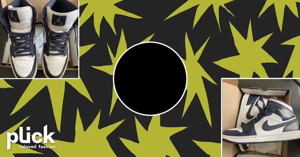 Air Jordan 1 Mid - Storlek 42,5, finns lite creases, ett ganska litet rep hål, har försökt rengöra dem så gott det går men det finns lite gult och lite brunt på vissa ställen på det, inte jätte mycket men mest i fram på den vita sulan. Att mötas går också bra.