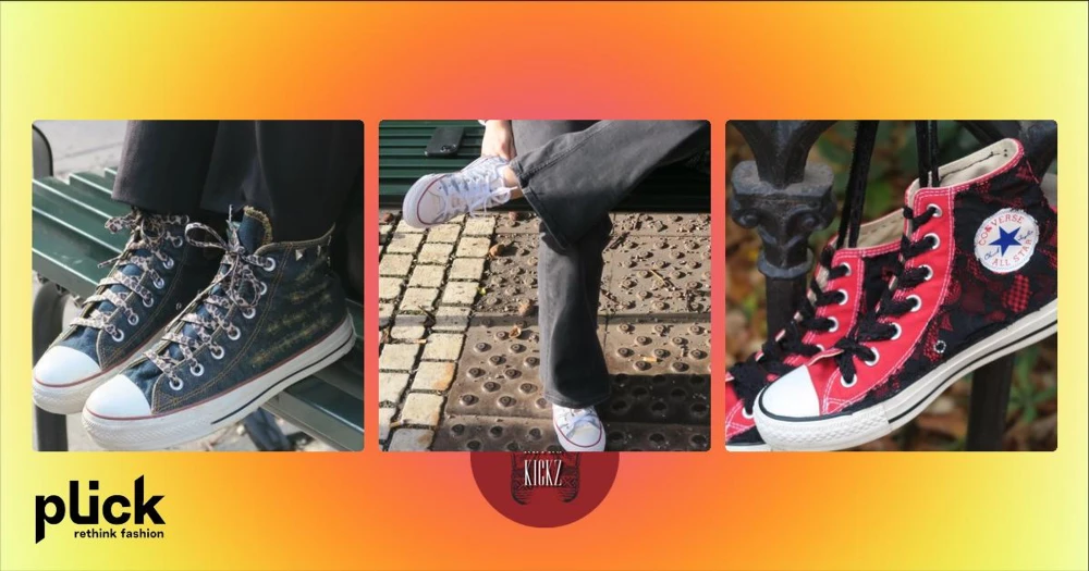Blå sneakers med spetsdetaljer - Unika Converse sneakers i blått med vackra spetsdetaljer. Skorna har klassisk snörning och en vit sula.