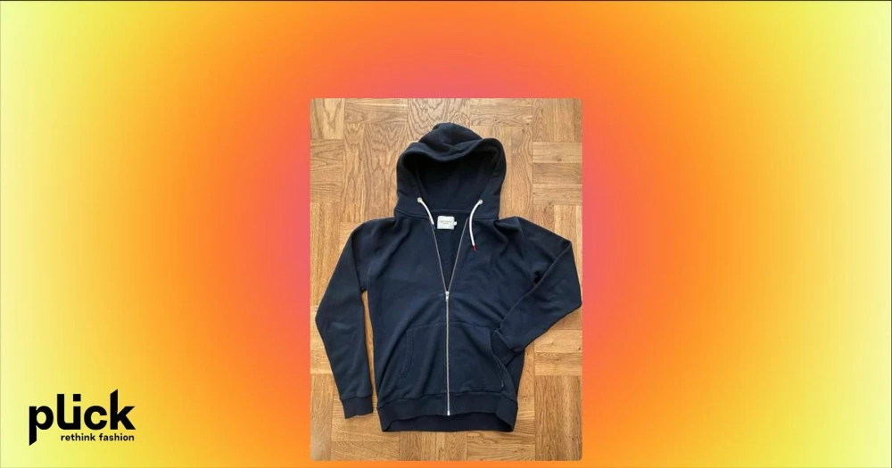 Marinblå zip-hoodie från Les Deux - Snygg marinblå hoodie från Les Deux med dragkedja framtill, stor huva och vita dragsnören. Hoodien har två rymliga fickor fram och ribbade muddar vid ärmar och nederkant. Perfekt för en avslappnad och stilren look.