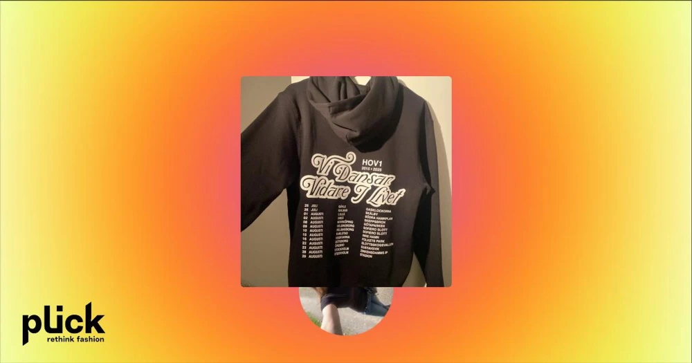 Svart Hov1 hoodie med turnétryck - Svart hoodie från Hov1 med stor vit text på ryggen: 'Vi Dansar Vidare I Livet' och turnédatum. I storlek S, priset kan diskuteras