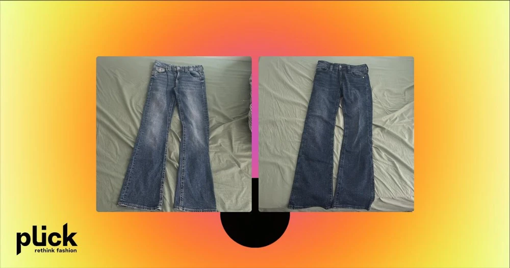Blå bootcut jeans från Gina Tricot - Snygga blå bootcut jeans från Gina Tricot med dekorativa bakfickor. Perfekta för en avslappnad stil. Klassisk femficksdesign och knappgylf.