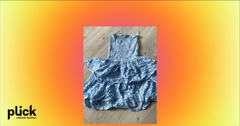 Blåvit sommarklänning från FB Sister - Supersöt blåvit klänning från FB Sister i butiken New Yorker med strapless. Klänningen har ett volangigt, flowy kjolparti och ett blommigt mönster. Perfekt för varma dagar och ger en fräsch och ungdomlig vibe.