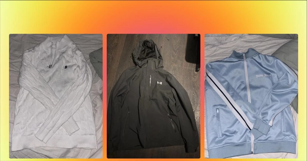 Ljusblå ziptröja från Palm Angels - Säljer en ljusblå ziptröja från Palm Angels med vita och svarta ränder längs ärmarna. Tröjan har hög krage, dragkedja framtill och två fickor med dragkedja. Palm Angels-logga broderad i vitt på bröstet. Perfekt för en sportig och trendig look.