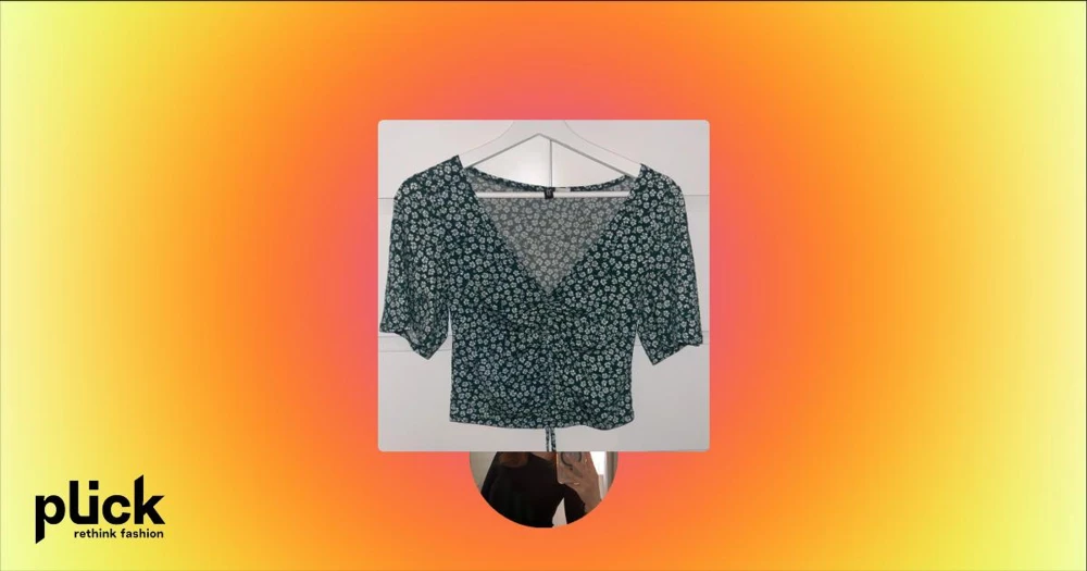 Grön blommig croppad blus H&M - Söt grön blus med vitt blommönster från H&M. Toppen har v-ringning, korta ärmar och en croppad passform med snörning framtill. Perfekt för vår och sommar med sitt lätta material och trendiga look.