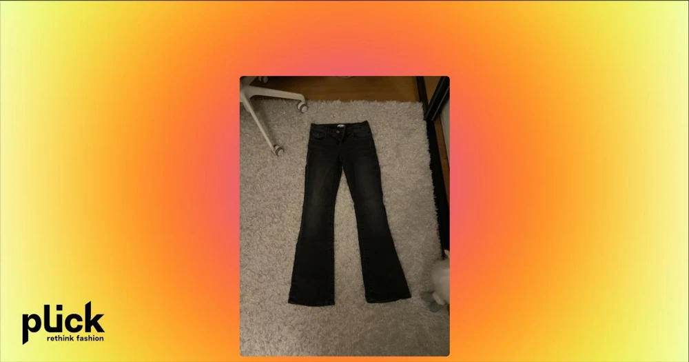 Svarta bootcut jeans med rosett-detalj - Säljer ett par svarta jeans från Gina tricot med bootcut-snitt och snygga rosett-detaljer och paljetter på bakfickorna. Jeansen har klassisk femficksdesign, kopparfärgade knappar och dragkedja. Materialet är jeans med en mörk tvätt som ger en cool vibe.