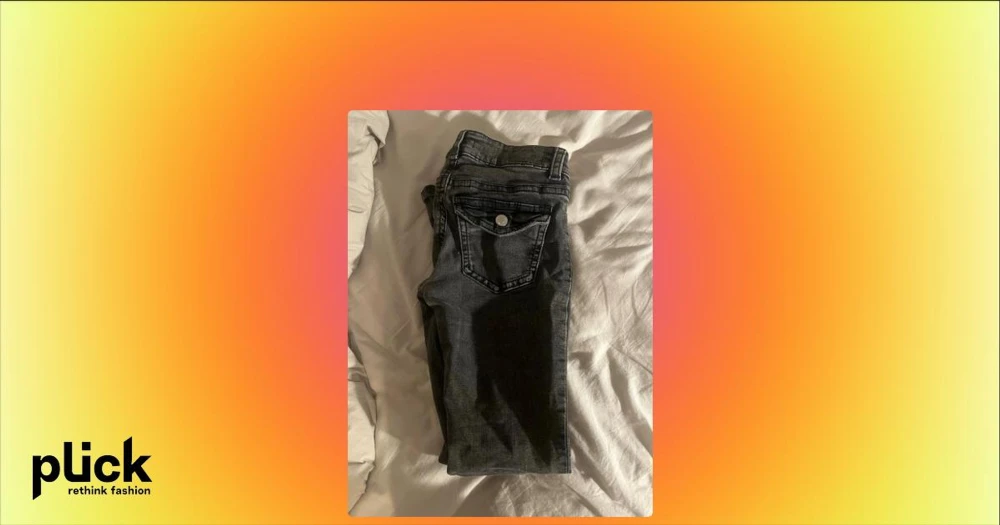 Svarta low waist jeans  - Snygga mörkgrå jeans med låg midja och cool fickdetalj med knapp bak. Jeansen har raka ben och klassisk femficksdesign. Perfekta för dig som gillar en avslappnad och trendig stil.