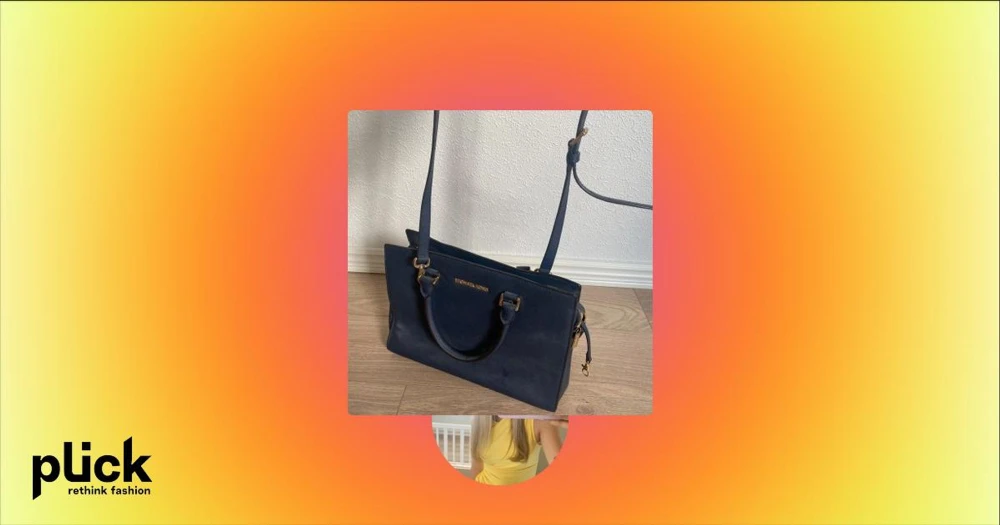 Mörkblå axelväska från Michael Kors - Snygg mörkblå axelväska från Michael Kors med guldiga metalldetaljer och dragkedja. Väskan har både handtag och justerbar axelrem, samt flera fack inuti för smart organisering. Tillverkad i tåligt skinn med stilren design och logga framtill.