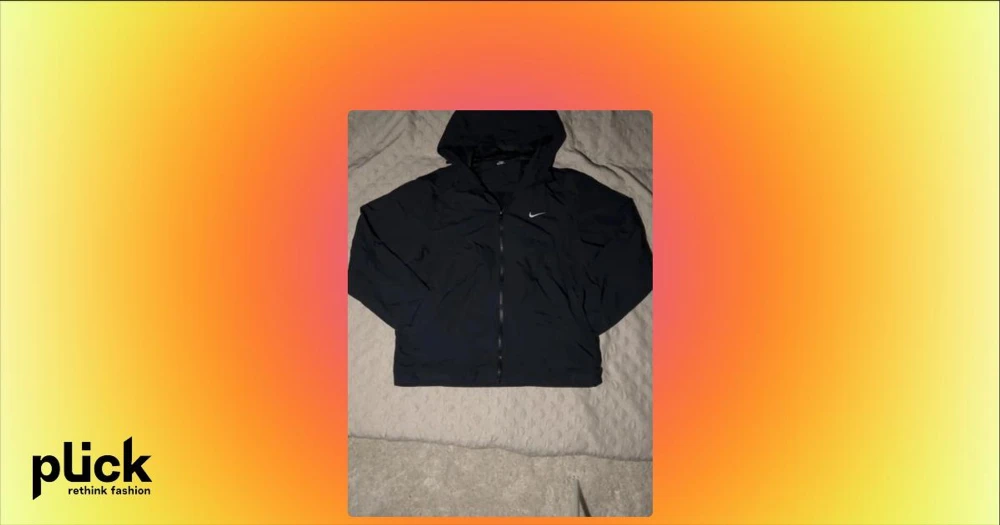 Svart vindjacka med huva från Nike - Snygg svart vindjacka från Nike med dragkedja framtill och huva. Jackan har en minimalistisk design med Nike-logga på bröstet och är tillverkad i ett lätt, vindtätt material. Perfekt för blåsiga dagar och enkel att matcha med olika outfits.
