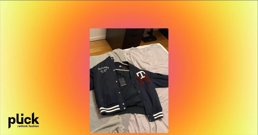 Mörkblå bomberjacka Tommy Hilfiger - Snygg mörkblå bomberjacka från Tommy Hilfiger med vita och vinröda detaljer. Jackan har broderad logga på bröstet, stora bokstäver 'TH' och klassiska ränder på muddar och krage. Perfekt för dig som vill ha en sportig och trendig look.