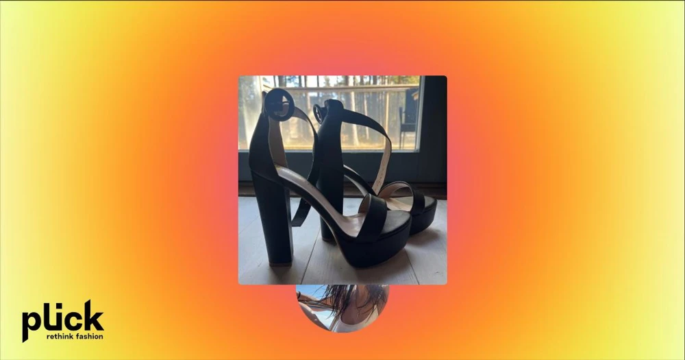 Svarta högklackade sandaler från Bigtree - Snygga svarta sandaler med hög klack och platåsula från Bigtree. De har en justerbar rem med rund spänne runt ankeln för en säker passform. Gjorde själv extra hål i remmet. Heel to toe: 23,5 cm.