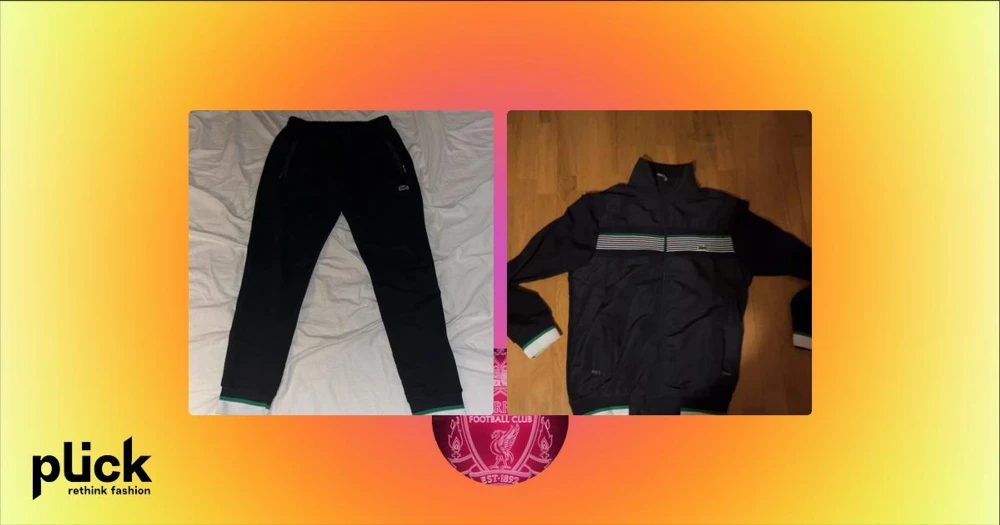 Svarta mjukisbyxor från Lacoste - Snygga svarta mjukisbyxor från Lacoste med elastisk midja och dragkedjefickor. Byxorna har gröna och vita detaljer vid bensluten och den klassiska krokodilloggan på sidan. Perfekta för en avslappnad stil.