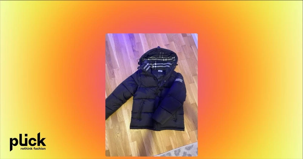 Svart pufferjacka från Burberry - Svart pufferjacka från Burberry med avtagbar huva och klassiskt rutigt foder i grått och vitt. Jackan har dragkedja, tryckknappar och två fickor framtill. På vänster ärm finns en tydlig Burberry London England-logga.