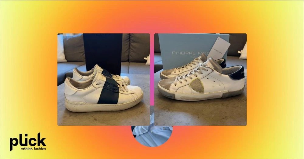 Vita sneakers från Philippe Model - Snygga vita sneakers från Philippe Model med grå detaljer och snörning. Skorna har en unik design med en kontrasterande svart häl och en grå tå. Perfekta för en stilren look. Sönder vid hälarna. Pris kan diskuteras.
