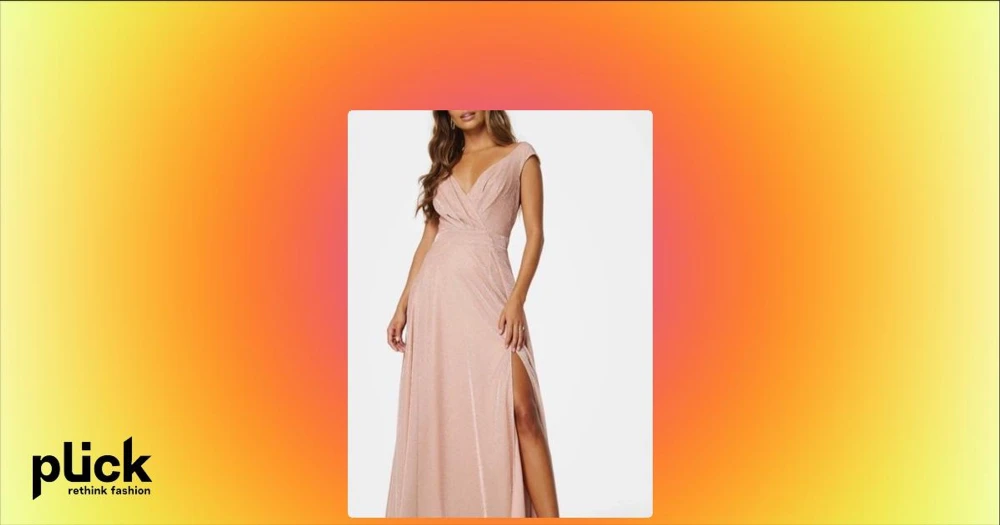 Balklänning  - Supersnygg långklänning i champagnefärg med glittrigt tyg och v-ringad. Klänningen har en slits framtill och är ärmlös. Den är endast använd en gång. Det står att den är storlek 10 uk
