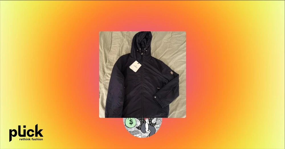 Mörkblå vindjacka från Moncler - Snygg mörkblå vindjacka från Moncler med huva och dragsko, hel dragkedja framtill och två fickor med dragkedja. Jackan har Moncler-logga på ärmen och är tillverkad i lätt polyester, perfekt för blåsiga och regniga dagar.