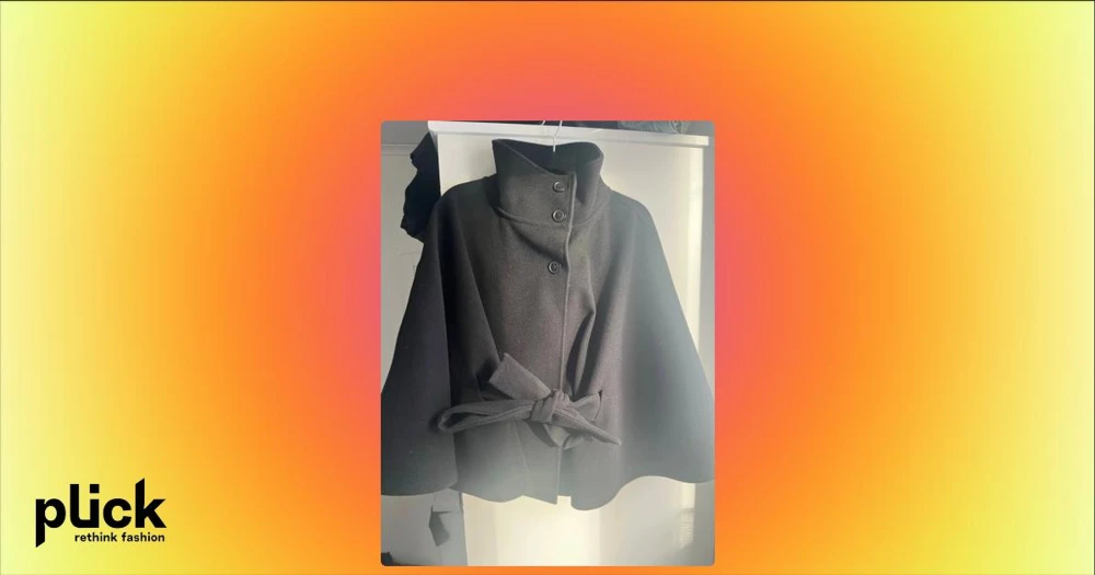 Svart poncho från Gina Tricot - Stilren svart cape-kappa från Gina Tricot med hög krage, knäppning med fyra knappar och ett brett knytband i midjan. Kappan har en vid, svepande siluett och är tillverkad i ett mjukt, tjockt tyg som ger en elegant look. ANVÄND 2-3 GÅNGER!🫶💕