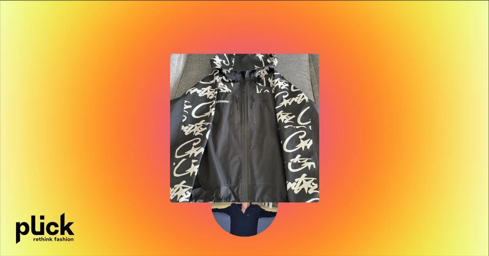 Cortiez Elitework - Säljer en svart vindjacka med vit graffiti-liknande print och huva från Cortiez. Jackan har dragkedja framtill och två bröstfickor med dragkedja. Perfekt för dig som gillar streetwear och vill sticka. All print är även reflex