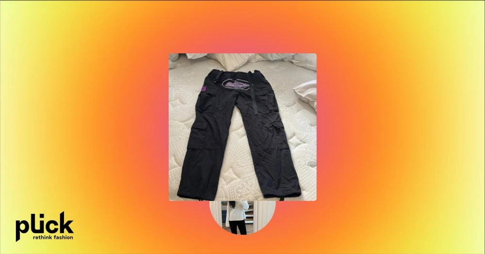 Svarta cargopants från Corteiz S - Svarta cargopants från Corteiz med flera fickor, broderad logga och lila patchdetaljer. Byxorna har bälte i midjan och coola broderier på benet. Perfekta för dig som gillar streetwear och vill sticka ut med snygga detaljer.