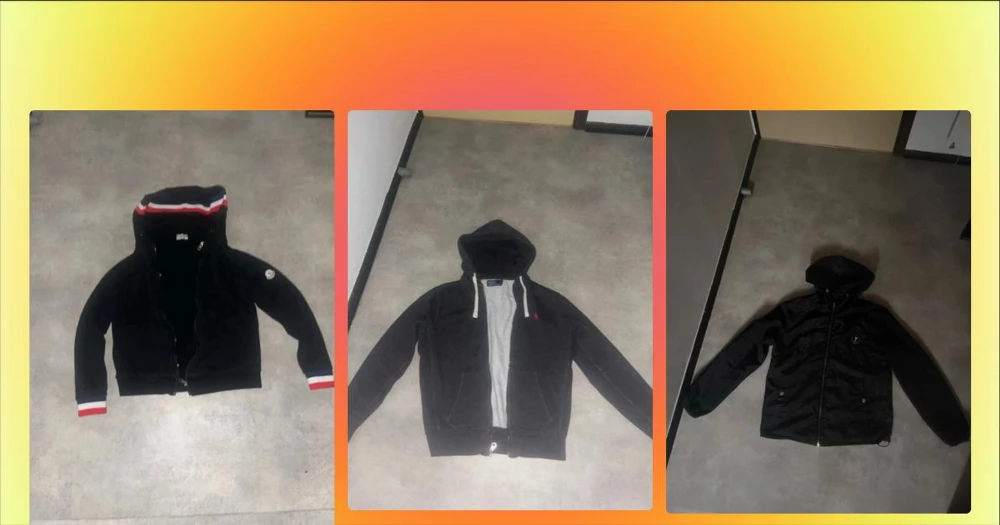 Svart Moncler zip - Svart bomberjacka från Moncler med huva och dragkedja. Jackan har ribbade muddar med röd, vit och blå randdetalj samt Moncler-logga på ärmen. Materialet är mjukt och känns som bomull. Perfekt för dig som gillar stilrena och sportiga plagg