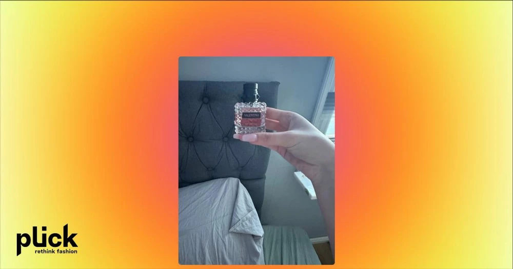 Valentino parfym med kristallflaska - Lyxig parfym från Valentino i en fyrkantig, transparent kristallflaska med nitar och rosa doftvätska. Flaskan har en svart kork och elegant etikett framtill. Perfekt för dig som vill ha en exklusiv och trendig doft på hyllan.