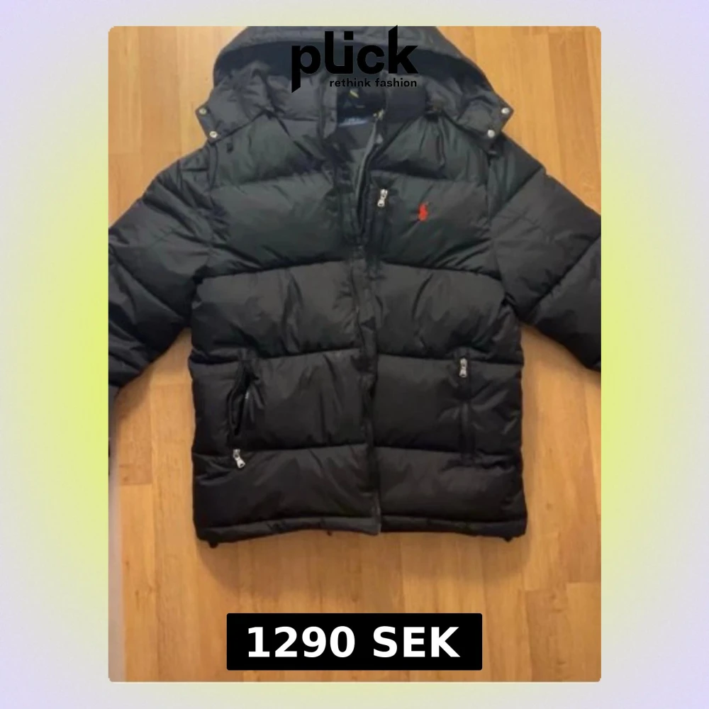 Säljer en svart pufferjacka från Polo Ralph Lauren med huva och dragkedja. Jackan har flera fickor med dragkedja och den klassiska röda logotypen på bröstet. Perfekt för kalla vinterdagar och riktigt snygg att bära till jeans eller joggers.