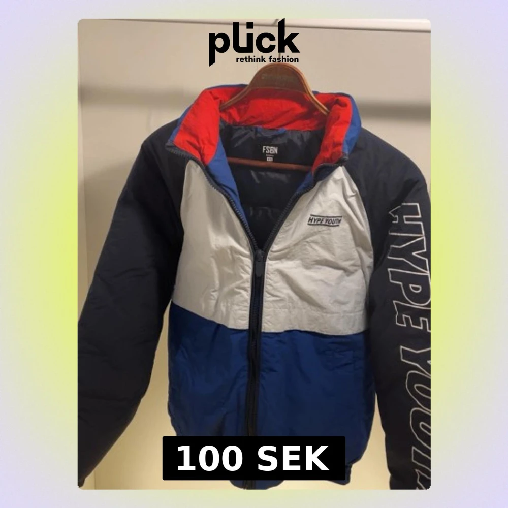 Säljer en snygg pufferjacka från FSBN med Hype Youth-tryck. Jackan har färgblock i blått, vitt och svart samt röd insida på kragen. Dragkedja framtill och elastiska muddar. Perfekt för kalla dagar och riktigt streetig stil.