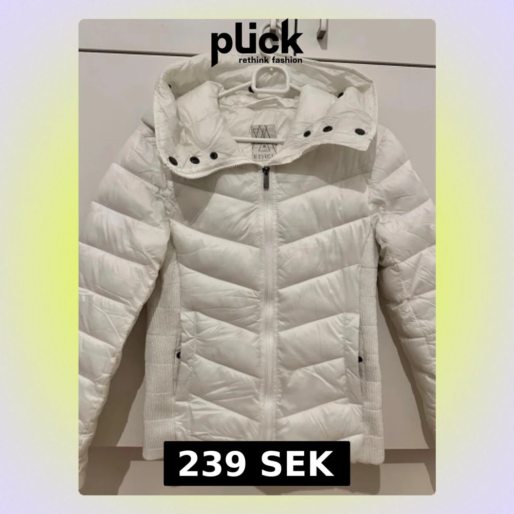 Snygg vit pufferjacka från Etirel med quiltad design / huva. Jackan har dragkedja framtill, ribbade partier på sidorna och svarta knappdetaljer vid kragen. Perfekt för kalla dagar och riktigt trendig look.