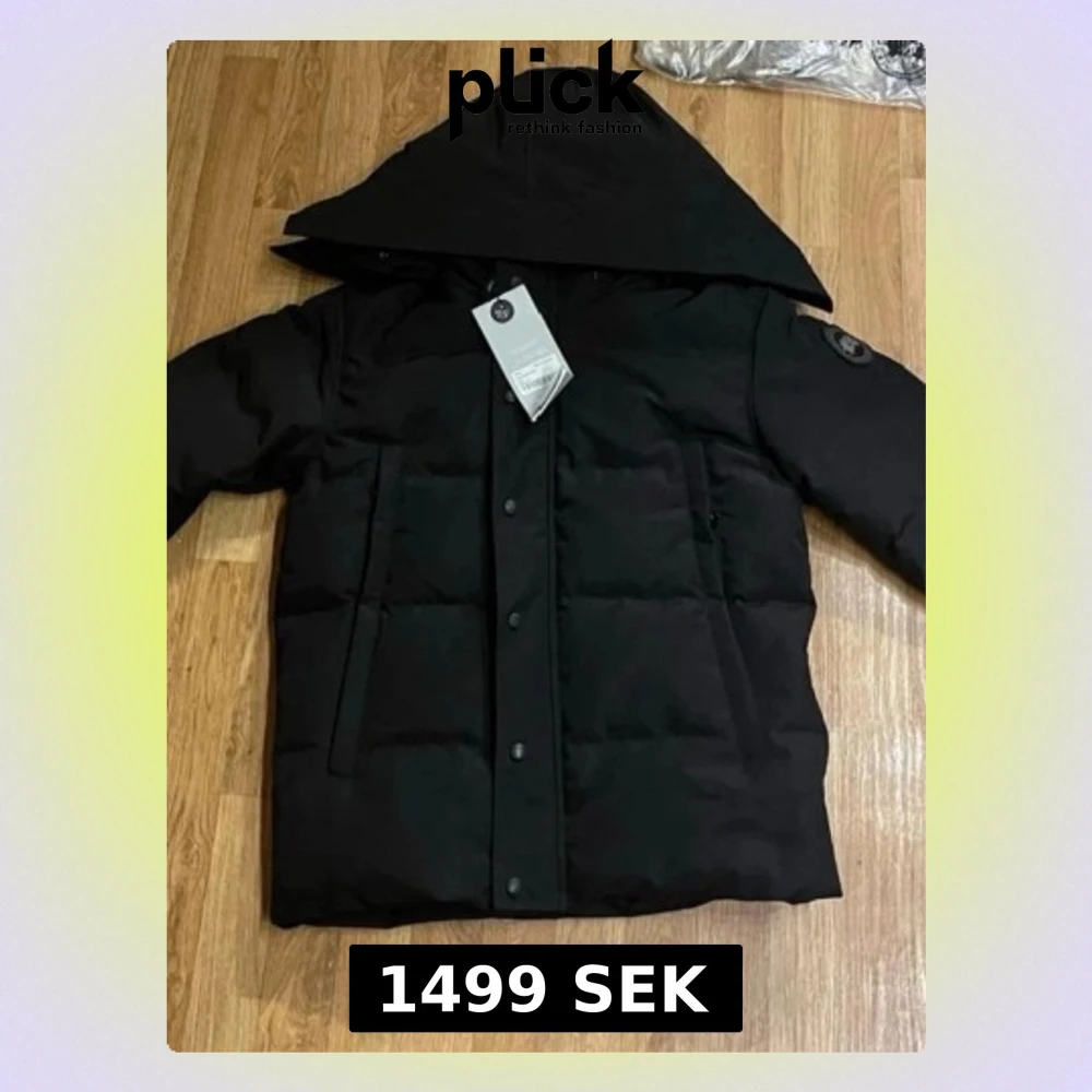 Snygg svart pufferjacka från Canada Goose med stor huva och klassisk logotyp på ärmen. Jackan har breda kanaler, tryckknappar framtill och två stora fickor. Perfekt för kalla dagar och riktigt varm. Materialet är slitstarkt och vattenavvisande.