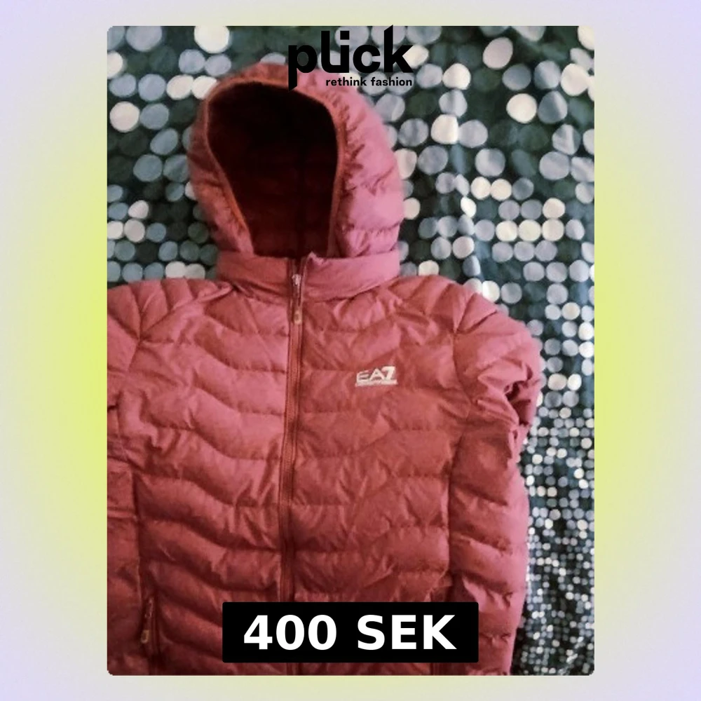 Säljer en vinröd pufferjacka från EA7 med huva och dragkedja framtill. Jackan har ett quiltat mönster och EA7-logga på bröstet. Perfekt för kalla dagar när du vill hålla värmen och ändå se snygg ut.