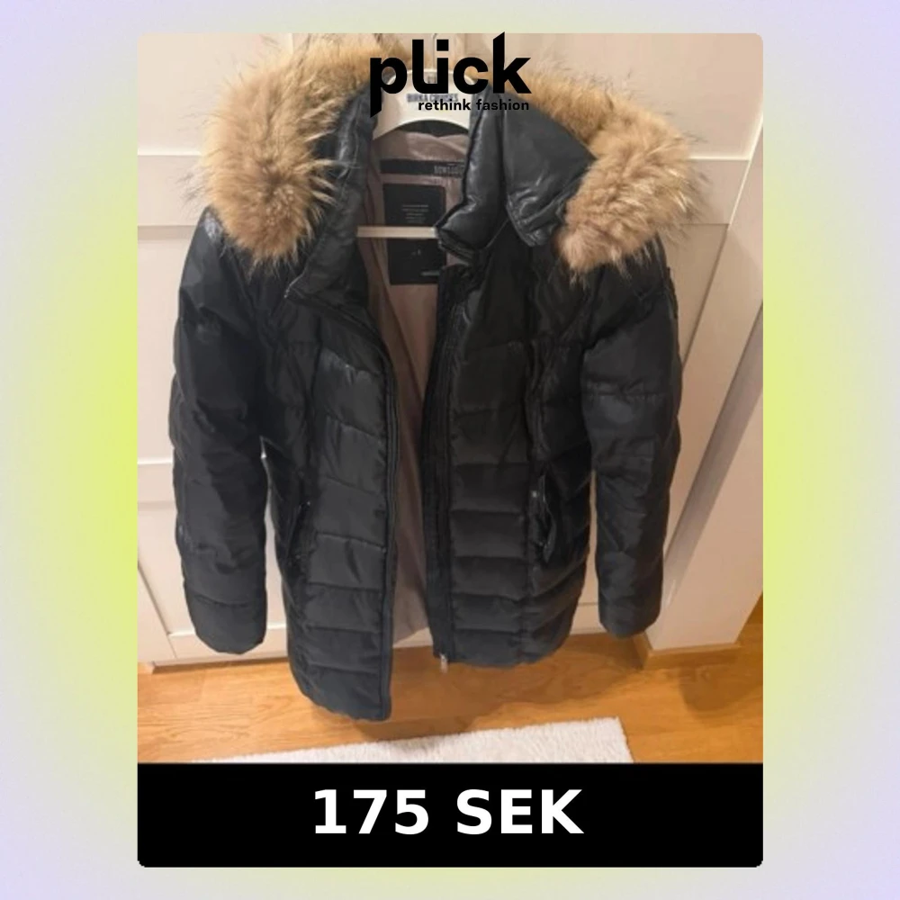 Svart pufferjacka med fuskpäls