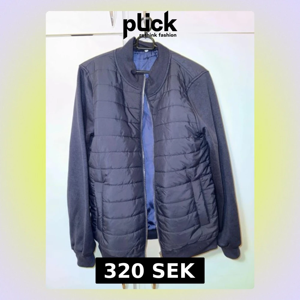 Snygg mörkblå cardigan med quiltad framsida och släta ärmar. Jackan har ribbade muddar vid ärmslut och nederkant samt en hög krage. Stängs med dragkedja och har en lätt glansig insida. Perfekt för kalla dagar. Storlek M men passar S