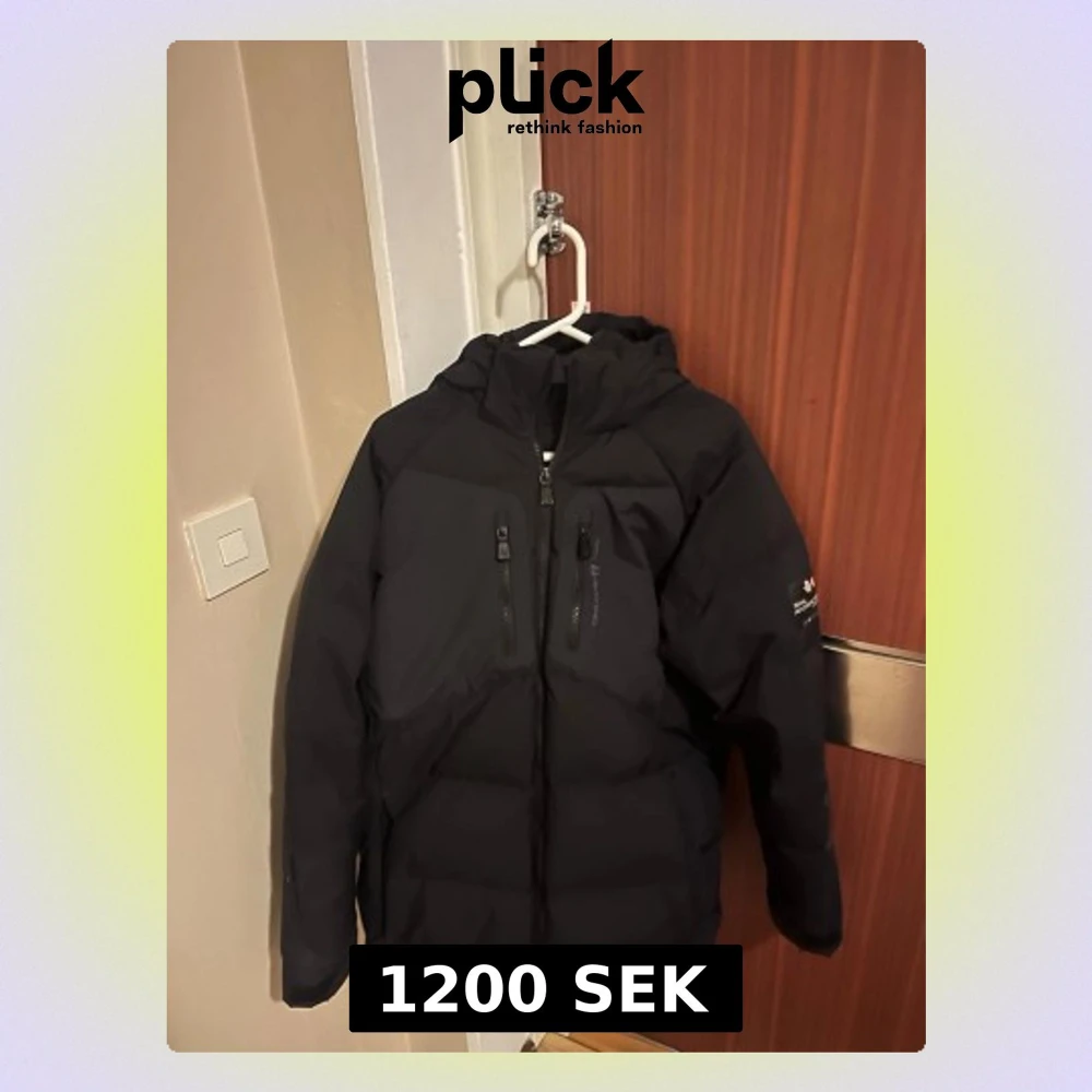 Säljer en svart pufferjacka från Sail Racing med huva och två vertikala bröstfickor med dragkedja. Jackan har en sportig look och är perfekt för kalla vinterdagar. Tillverkad i slitstarkt material och designad för att hålla värmen. Snygg logga på ärmen.
