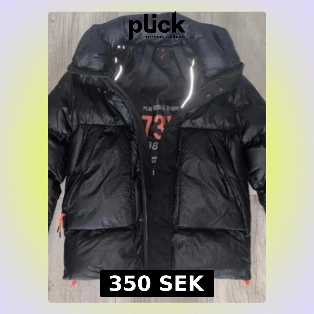 Snygg svart pufferjacka från PLM RIGID DENIM med stor huva och två rejäla framfickor. Jackan har glansigt material och dragkedja framtill. Perfekt för kalla dagar när du vill hålla värmen och ändå se cool ut.