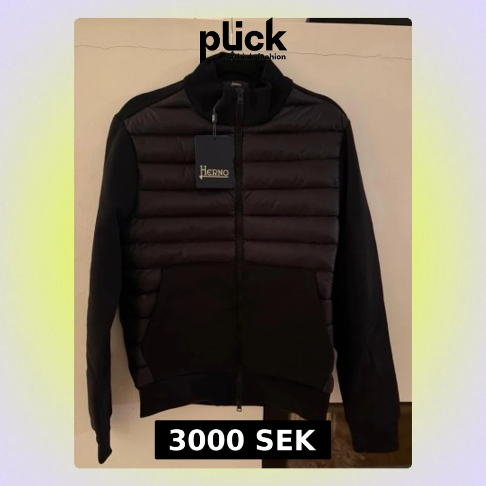 Snygg svart pufferjacka från Herno med quiltad framsida och släta ärmar. Jackan har hög krage, dragkedja framtill och stora fickor. Materialmix med vadderad front och mjuka partier på ärmar och rygg. Perfekt för kalla dagar.