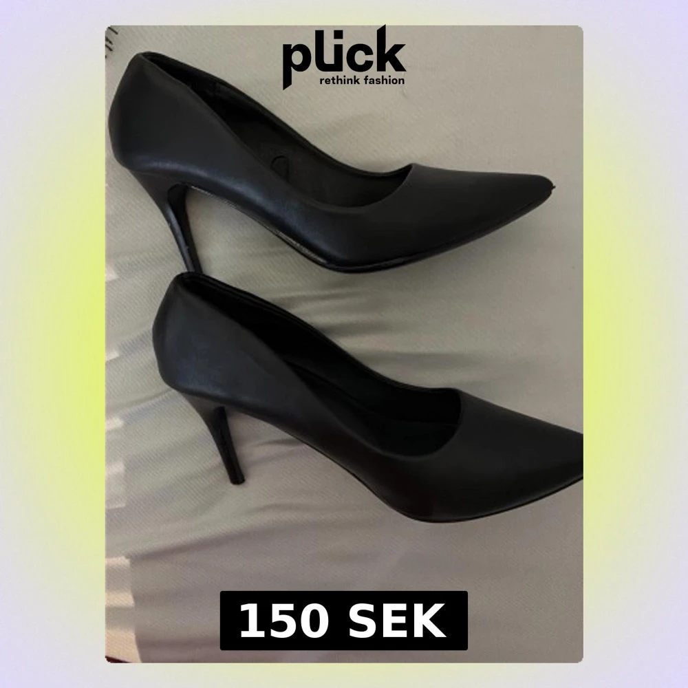 Säljer ett par svarta pumps med spetsig tå och smal klack. Skorna har en stilren och tidlös design i slätt material, perfekta för att lyfta vilken outfit som helst.