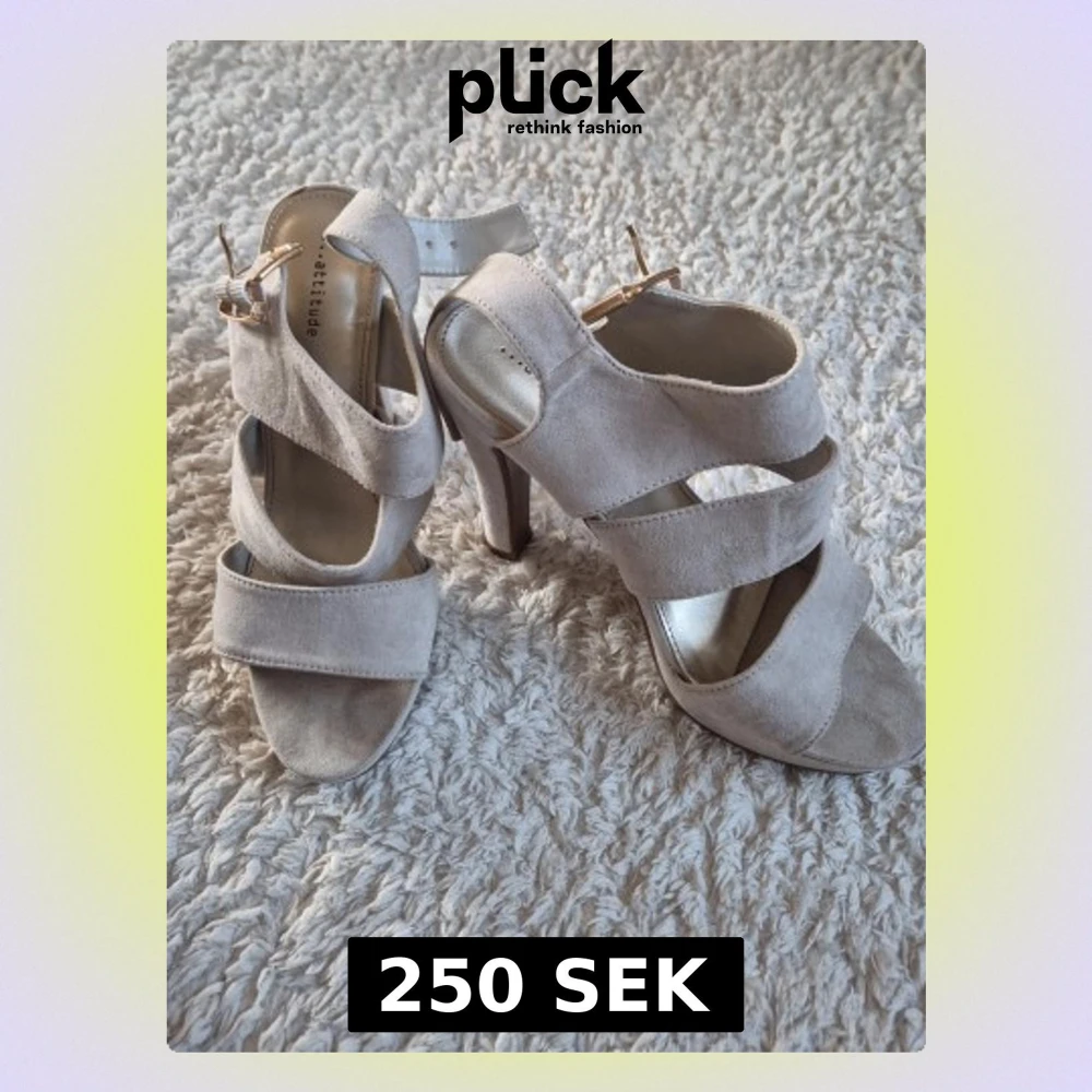 Säljer ett par snygga pumps från Attitude i beige mocka. Skorna har öppen tå, breda remmar och hög klack. Stängs med spänne vid ankeln. Perfekta för dig som vill ha en stilren och trendig look.