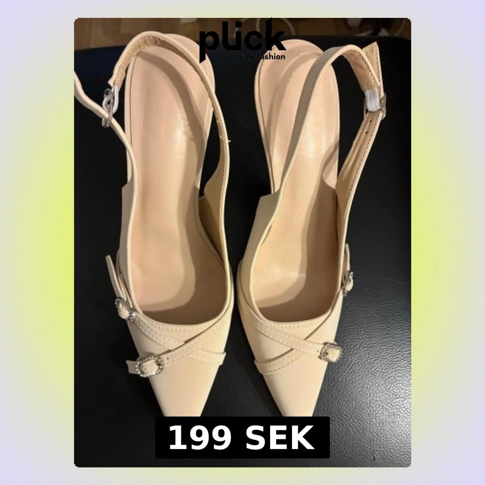 Beige pumps med spetsig tå och klack med silvriga detaljer. Storlek 37. Helt nya.