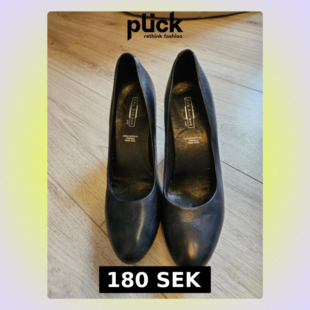 Klassiska svarta pumps från 5th Avenue i äkta läder. Skorna har rundad tå och en elegant hög klack som ger en stilren siluett. Perfekta för att lyfta vilken outfit som helst med en tidlös look.