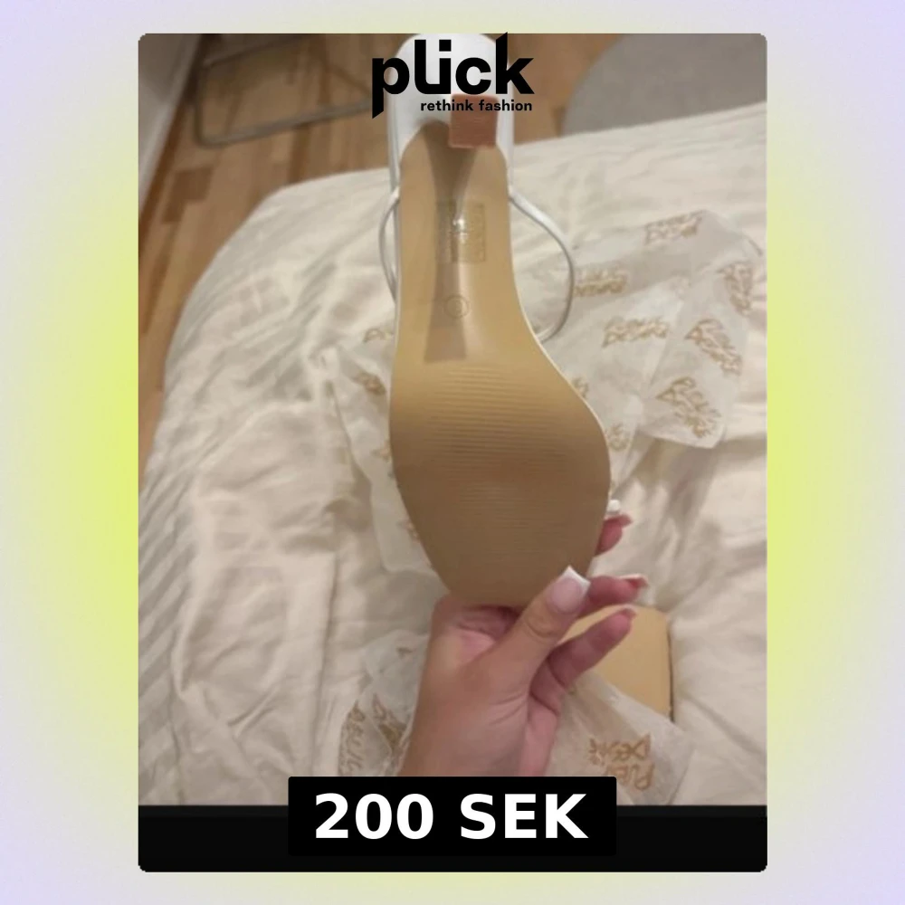 Säljer ett par vita pumps från Public Desire med tunna remmar och fyrkantig tå. Skorna har en elegant design med slät ovandel och en stilren klack. Perfekta för dig som gillar trendiga och minimalistiska skor. Materialet är konstläder.