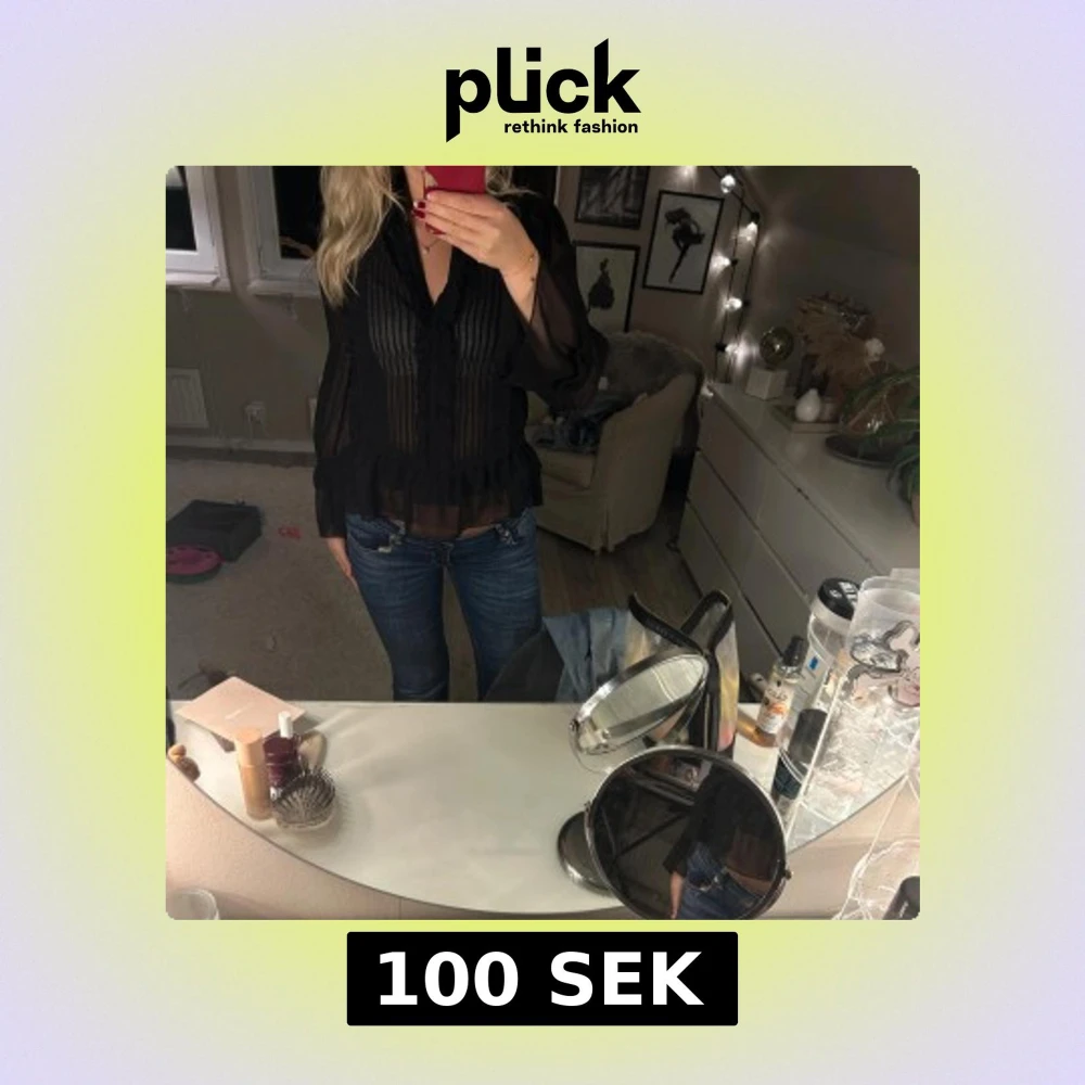 Säljer en svart transparent blus med volangdetaljer längs nederkant och ärmslut. Blusen har långa ärmar, knappar framtill och lätt rynkade partier som ger en snygg och trendig look. Perfekt för dig som gillar en lite mer edgy stil i super bra skick från only i storlek S💕