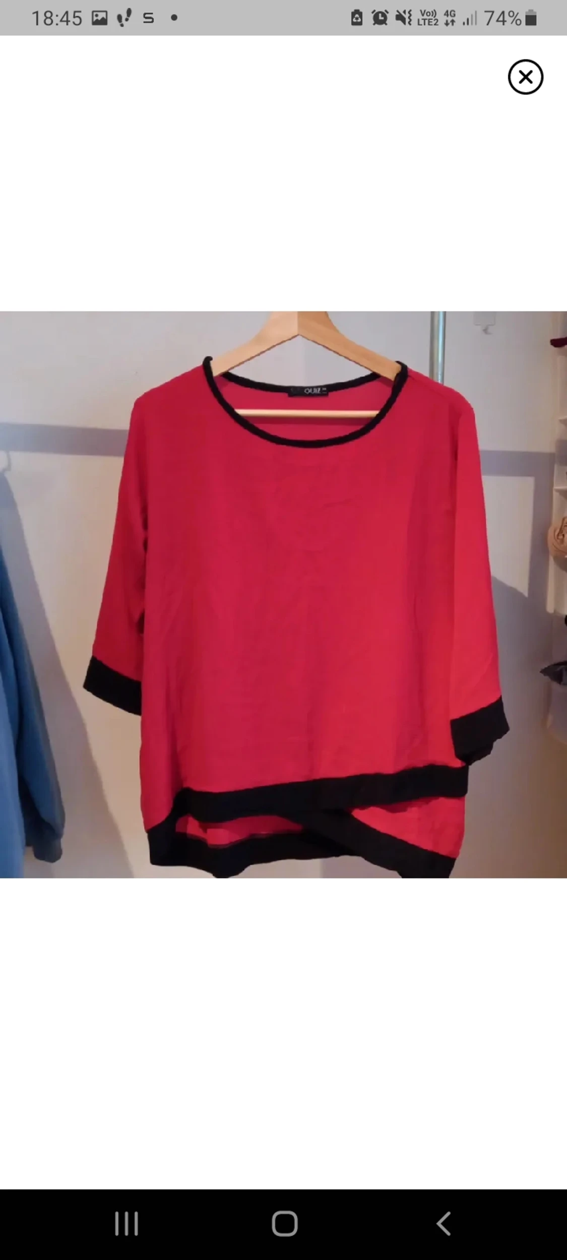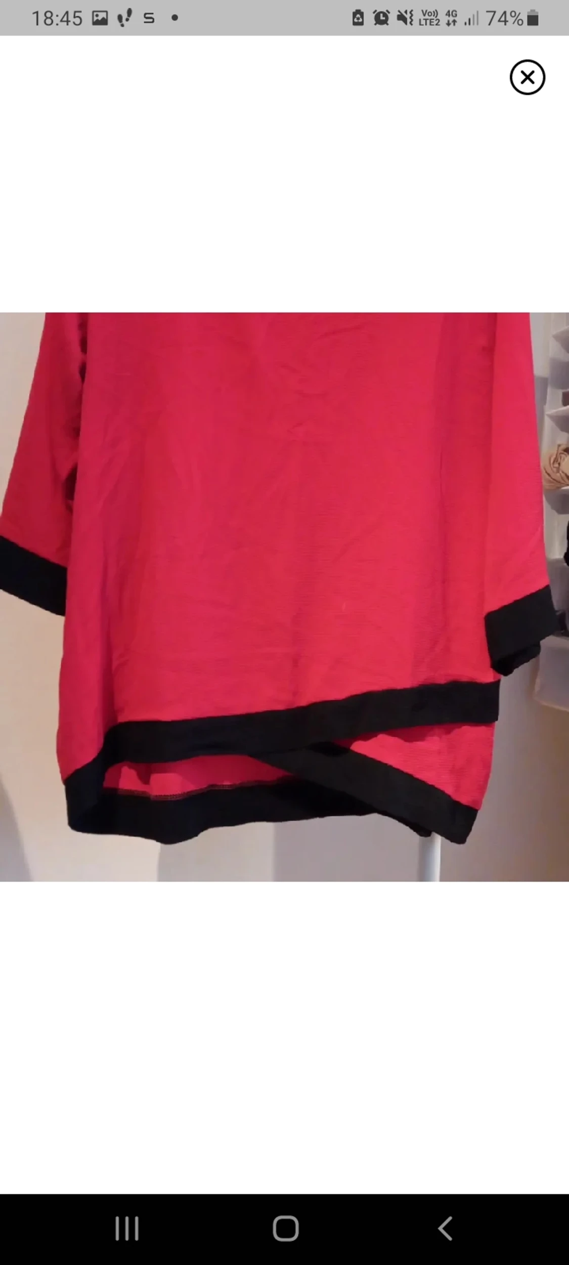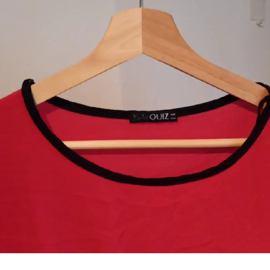 En röd blus med svarta detaljer, lite kort vid ärmarna men jätte fin. Säljer pga inte varit till användning! Skriv vid frågor!💕
