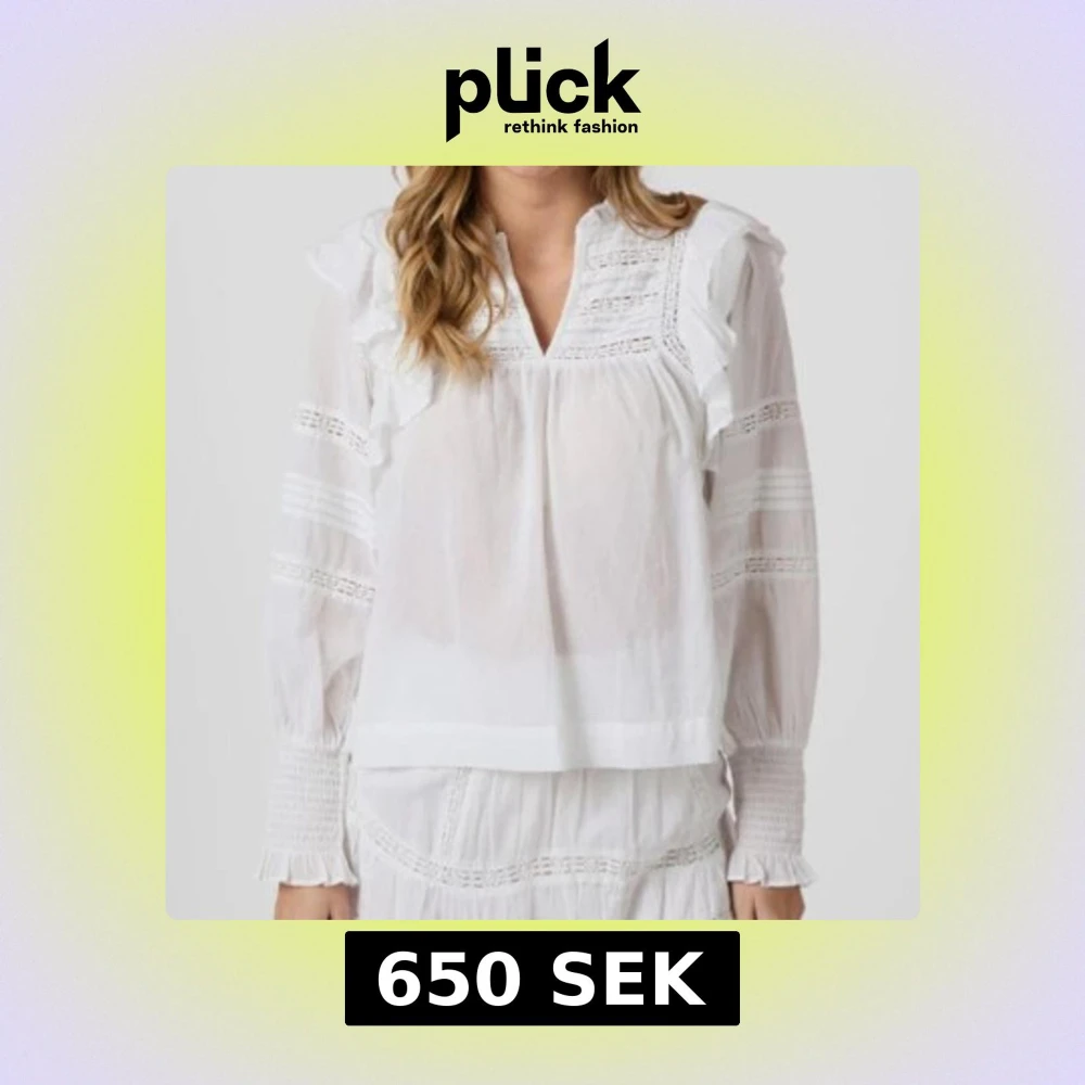 Superfin vit blus i romantisk stil med spets- och volangdetaljer. Något genomskinlig, perfekt till både vardag och fest. Använd ett fåtal gånger, i mycket fint skick. 🤍🤍