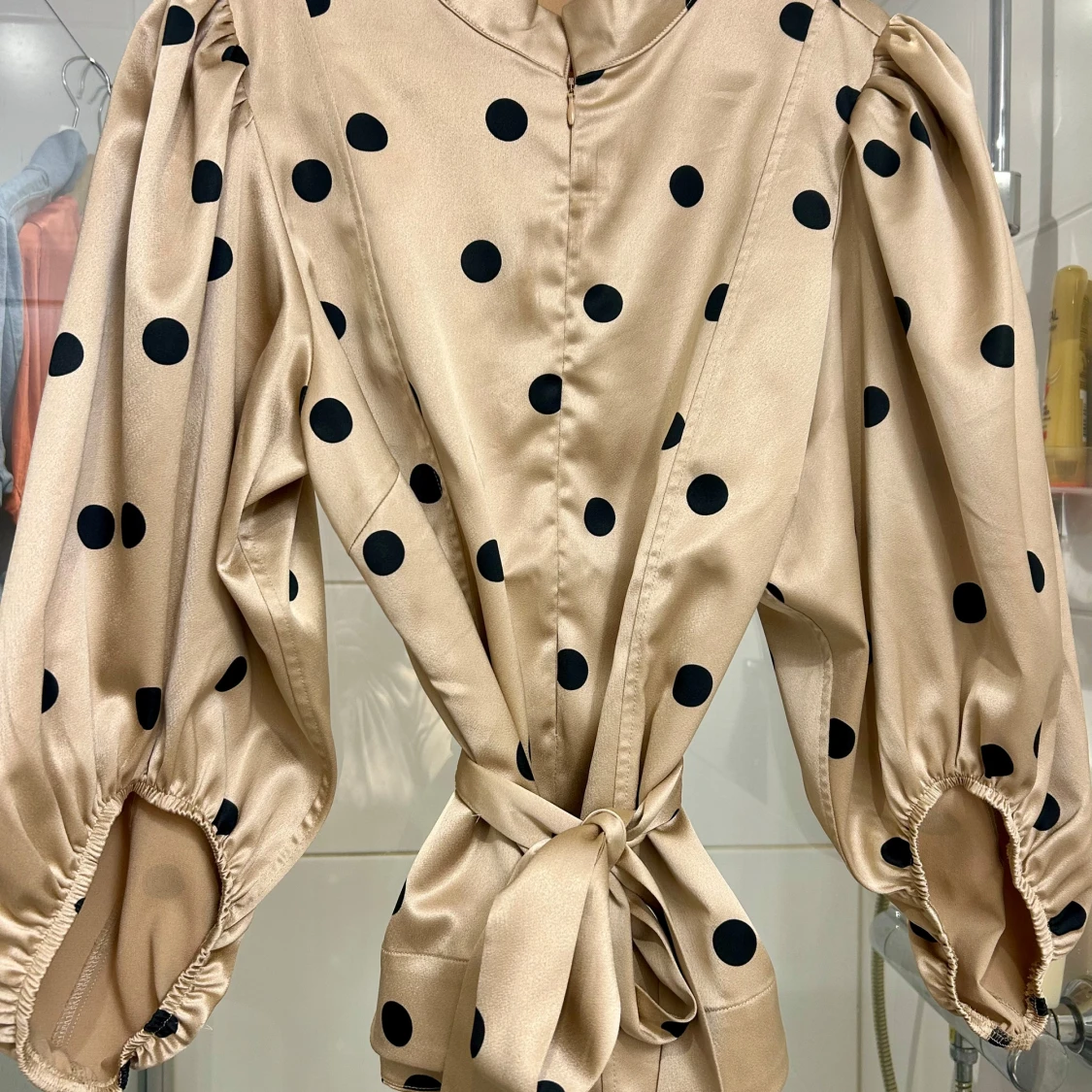 Mycket fin blus i otroligt fin kvalitet och mycket gott skick. Stl 38 men fungerar för 34 - 36 också.