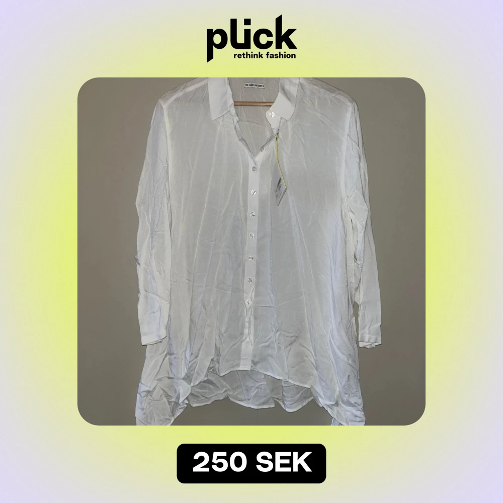 Tunnare, lite längre blus/skjorta från The Shirt Factory. Längre på sidorna. Helt oanvänd, prislappen kvar.